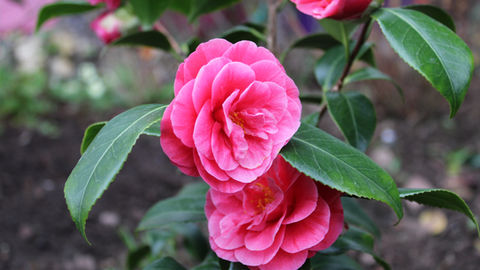 La floración de las camelias es un precioso espectáculo que se produce, según variedades, en tres periodos que se escalonan entre octubre y diciembre, diciembre y marzo, o marzo y mayo. Las flores suelen ser de gran tamaño, con diámetros medios en torno a los seis u ocho centímetros, lo cual las hace "mirar"hacia abajo en algunos casos. Las Camelias poseen, según variedades, distintos tipos de flores, en función del número de pétalos.